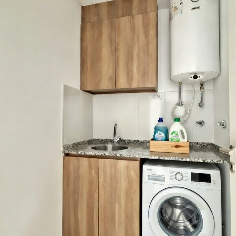 Tiene 2 dormitorios con ventana (persianas) y placard completo de excelente calidad. Posee 1 baño social amplio y 1 baño completo en la zona de dormitorios (ambos con accesorios incluidos). También tiene un cuarto de lavado en donde se encuentra el termotanque (incluido), amoblamiento completo, mesada y conexión para lavarropas.